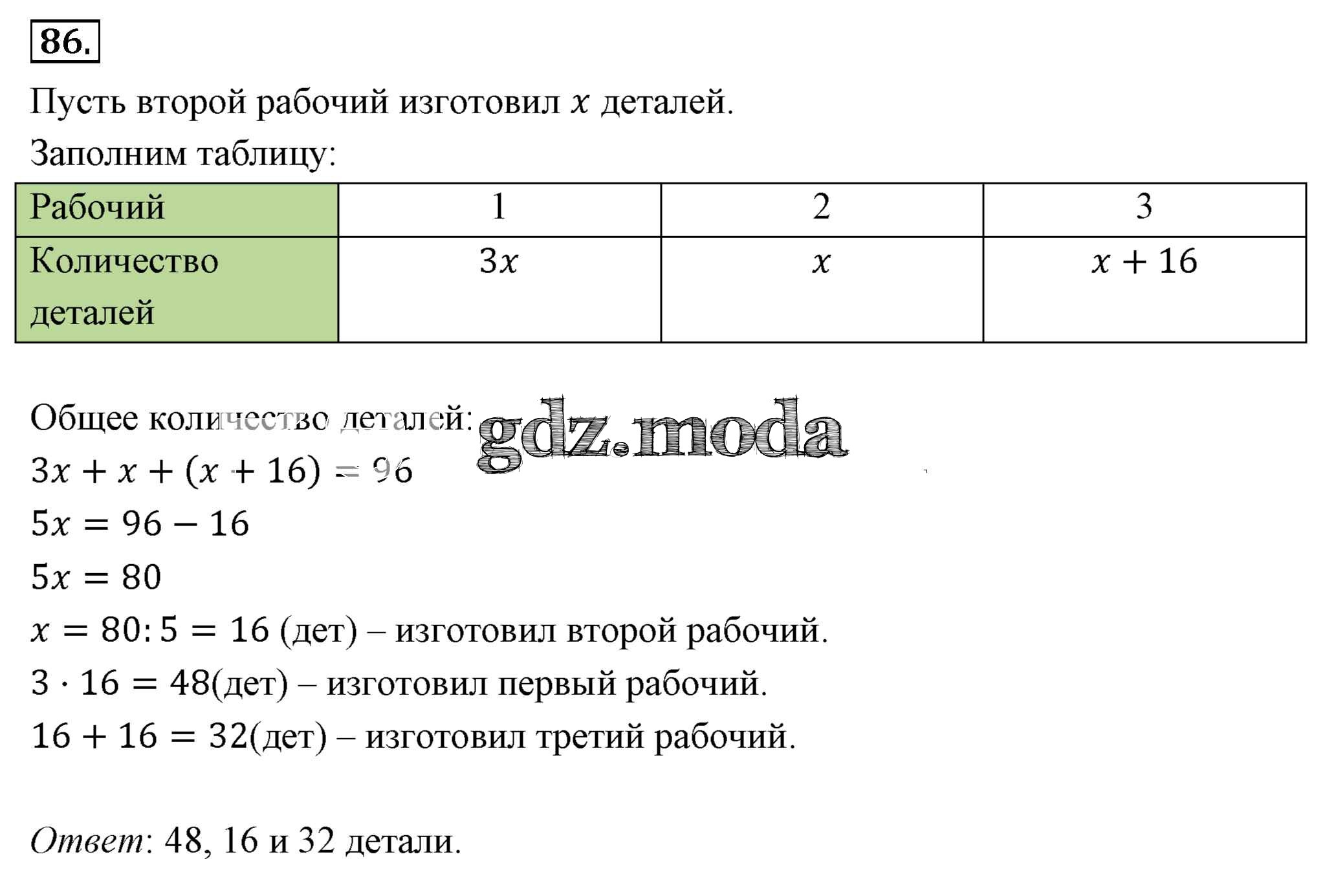 ОТВЕТ на задание № 86 Учебник по Алгебре 7 класс Мерзляк Алгоритм успеха Базовый уровень