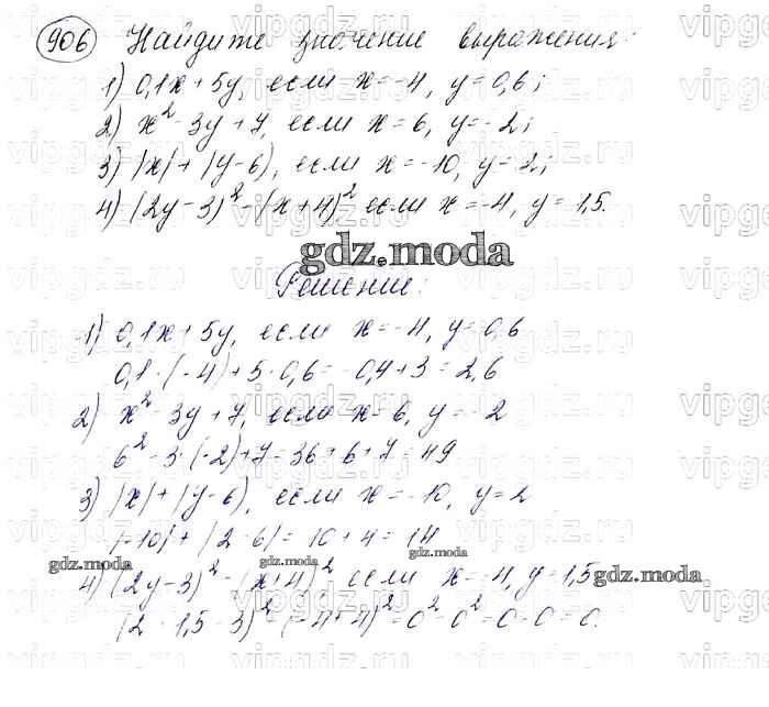 ОТВЕТ на задание № 906 Учебник по Алгебре 7 класс Мерзляк Алгоритм успеха Базовый уровень