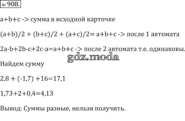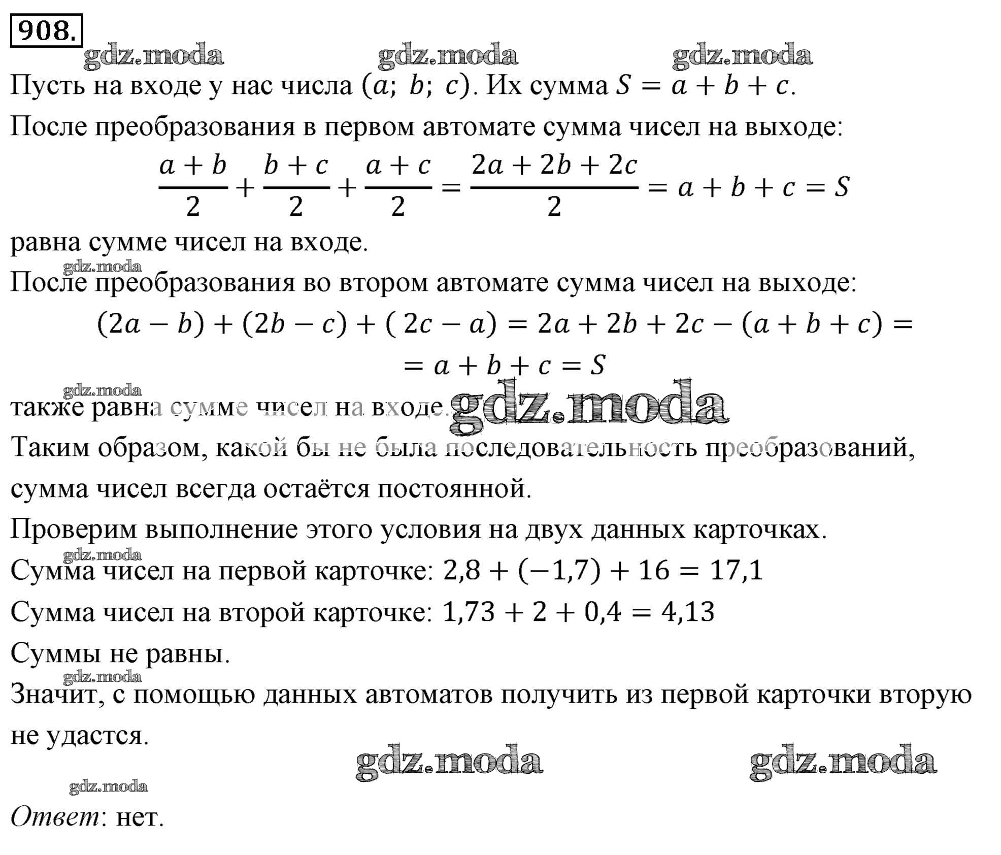 ОТВЕТ на задание № 908 Учебник по Алгебре 7 класс Мерзляк Алгоритм успеха Базовый уровень