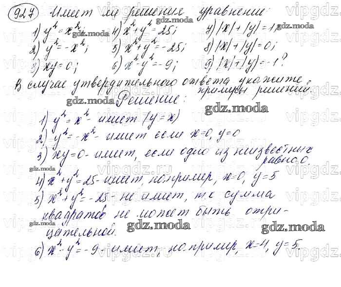 ОТВЕТ на задание № 927 Учебник по Алгебре 7 класс Мерзляк Алгоритм успеха Базовый уровень