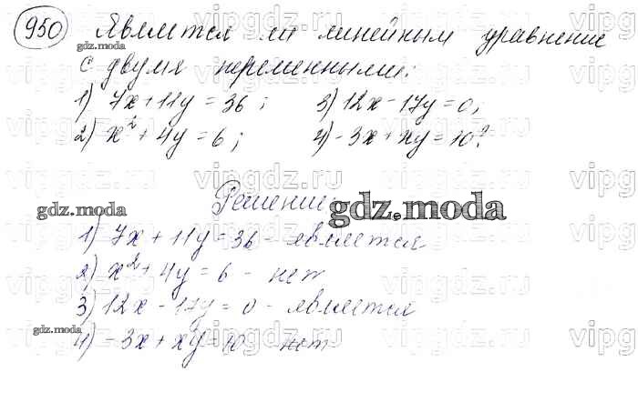 ОТВЕТ на задание № 950 Учебник по Алгебре 7 класс Мерзляк Алгоритм успеха Базовый уровень