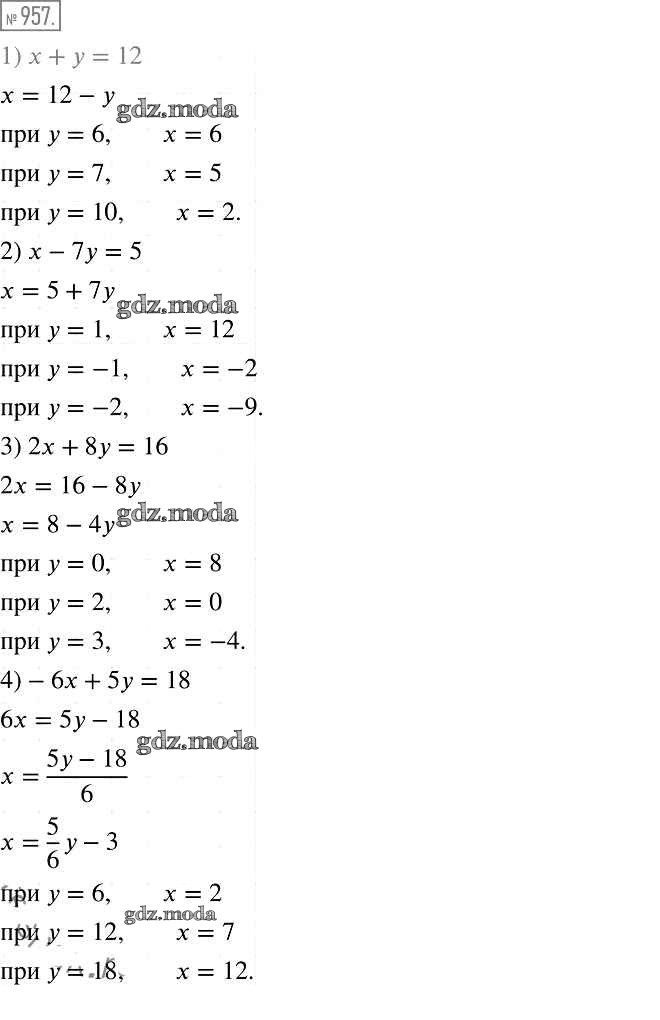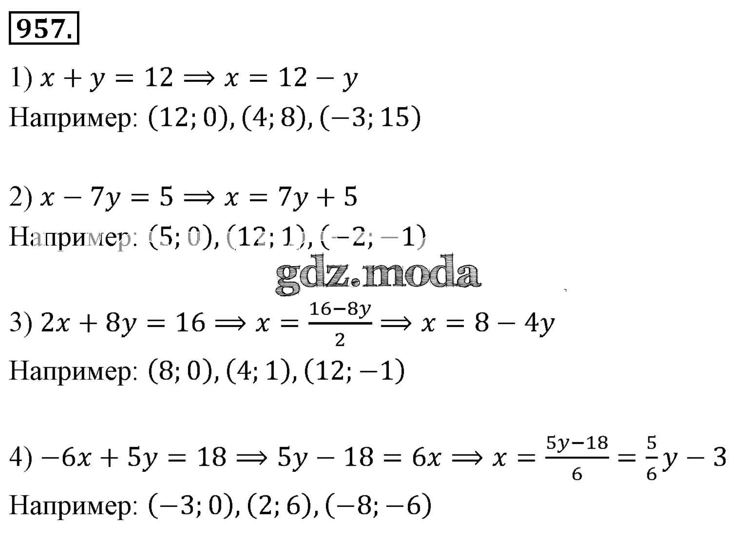 ОТВЕТ на задание № 957 Учебник по Алгебре 7 класс Мерзляк Алгоритм успеха Базовый уровень