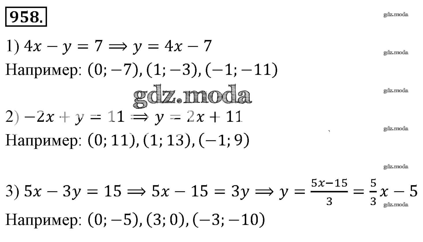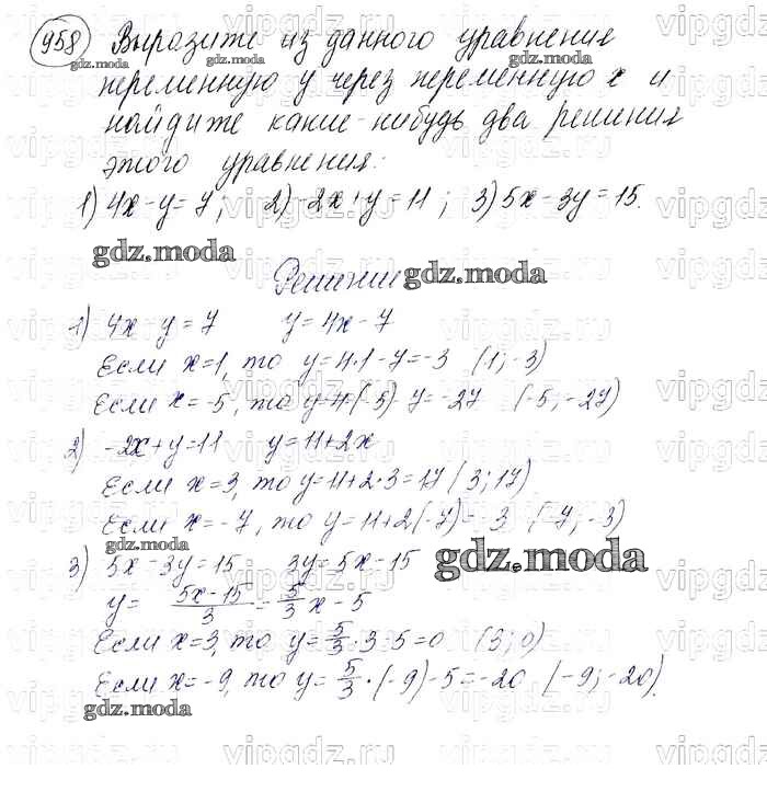 ОТВЕТ на задание № 958 Учебник по Алгебре 7 класс Мерзляк Алгоритм успеха Базовый уровень