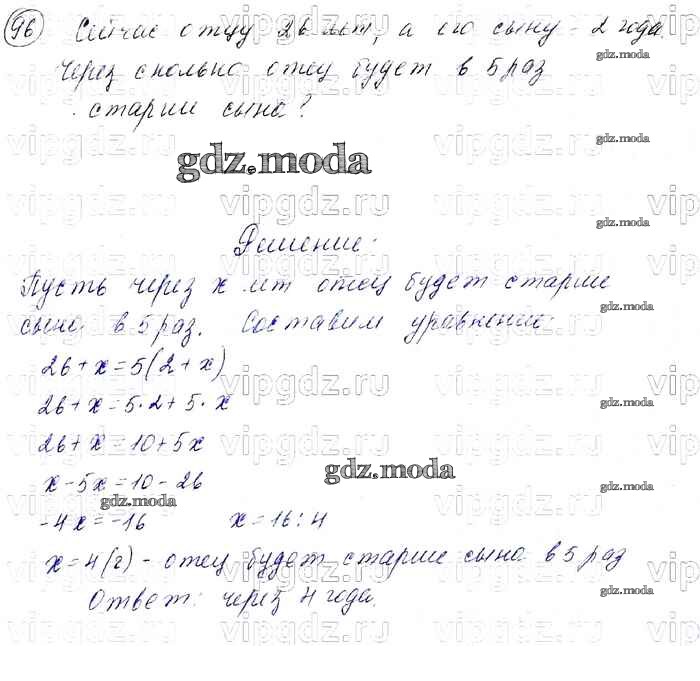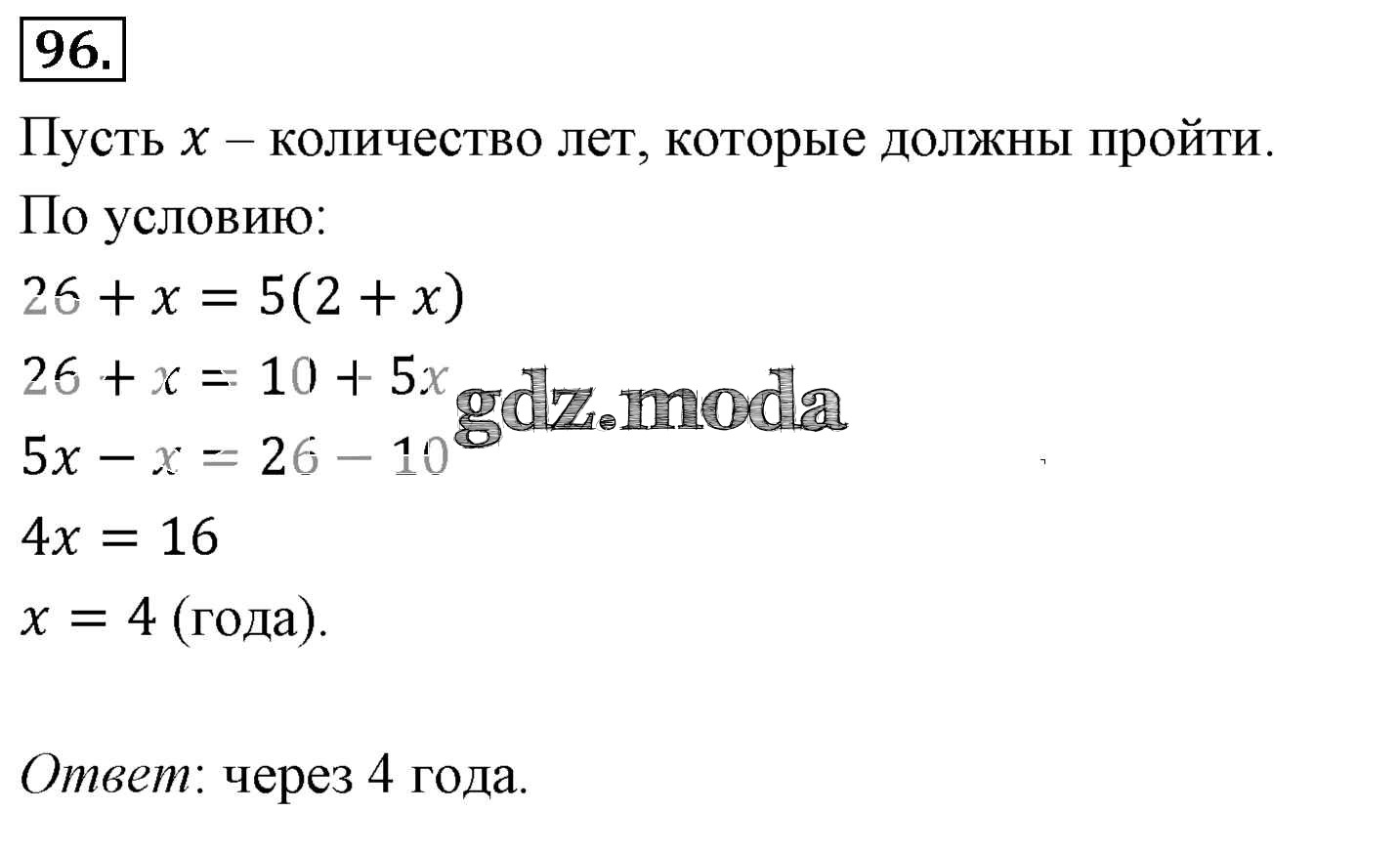 ОТВЕТ на задание № 96 Учебник по Алгебре 7 класс Мерзляк Алгоритм успеха Базовый уровень