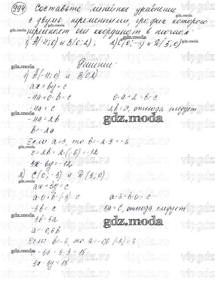 ОТВЕТ на задание № 994 Учебник по Алгебре 7 класс Мерзляк Алгоритм успеха Базовый уровень