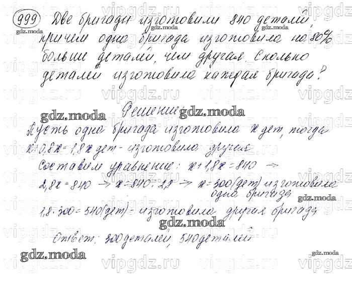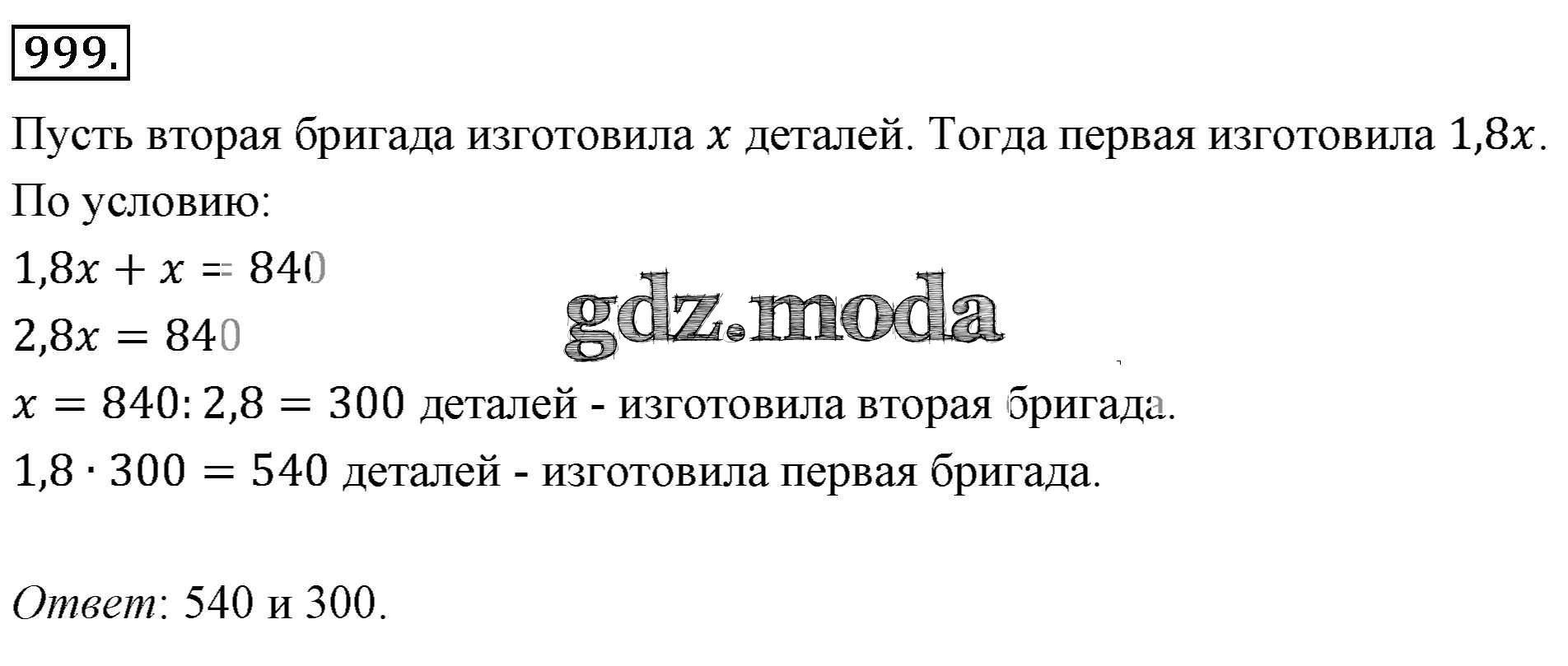 ОТВЕТ на задание № 999 Учебник по Алгебре 7 класс Мерзляк Алгоритм успеха Базовый уровень