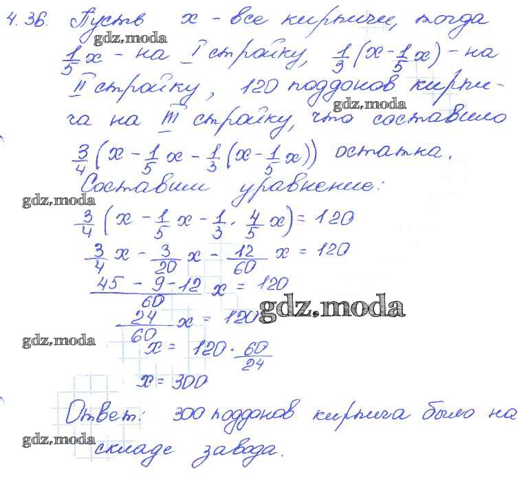 ОТВЕТ на задание № 36 Задачник по Алгебре 7 класс Мордкович Базовый уровень