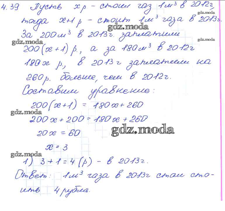 ОТВЕТ на задание № 39 Задачник по Алгебре 7 класс Мордкович Базовый уровень