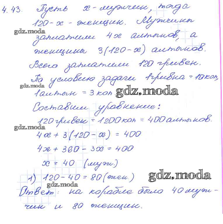 ОТВЕТ на задание № 43 Задачник по Алгебре 7 класс Мордкович Базовый уровень