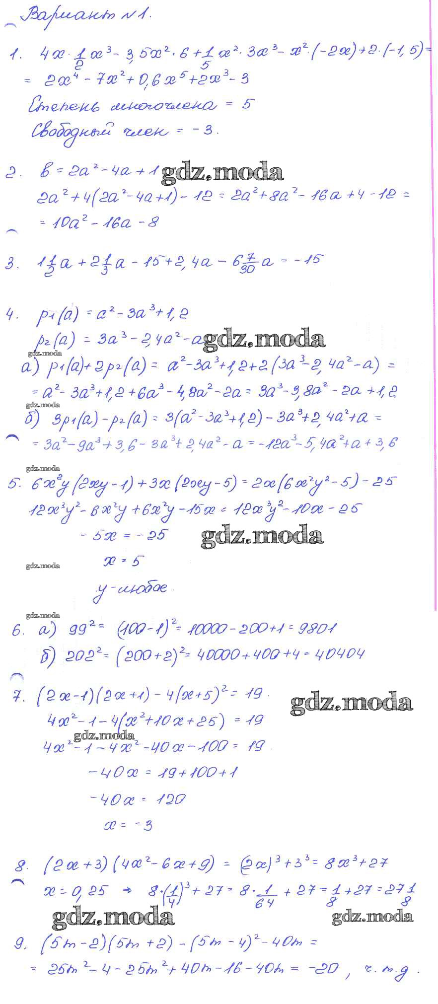 ОТВЕТ на задание № 1 Задачник по Алгебре 7 класс Мордкович Базовый уровень