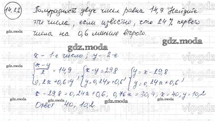 ОТВЕТ на задание № 22 Задачник по Алгебре 7 класс Мордкович Базовый уровень