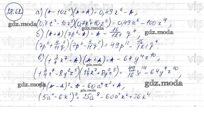 ОТВЕТ на задание № 62 Задачник по Алгебре 7 класс Мордкович Базовый уровень
