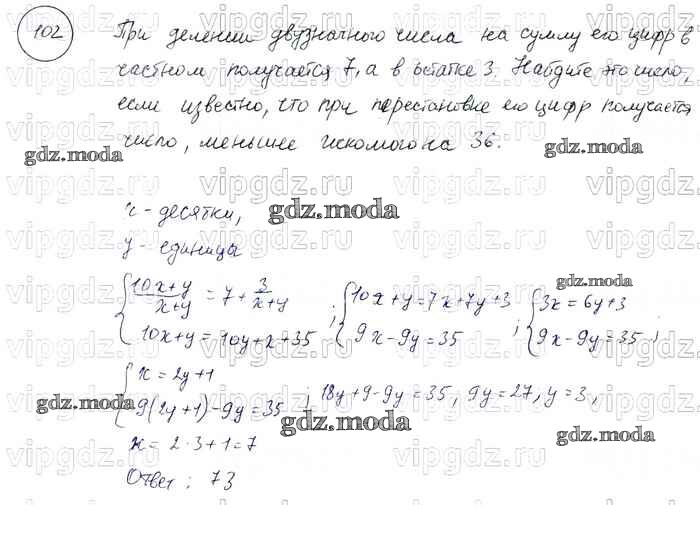 ОТВЕТ на задание № 102 Задачник по Алгебре 7 класс Мордкович Базовый уровень