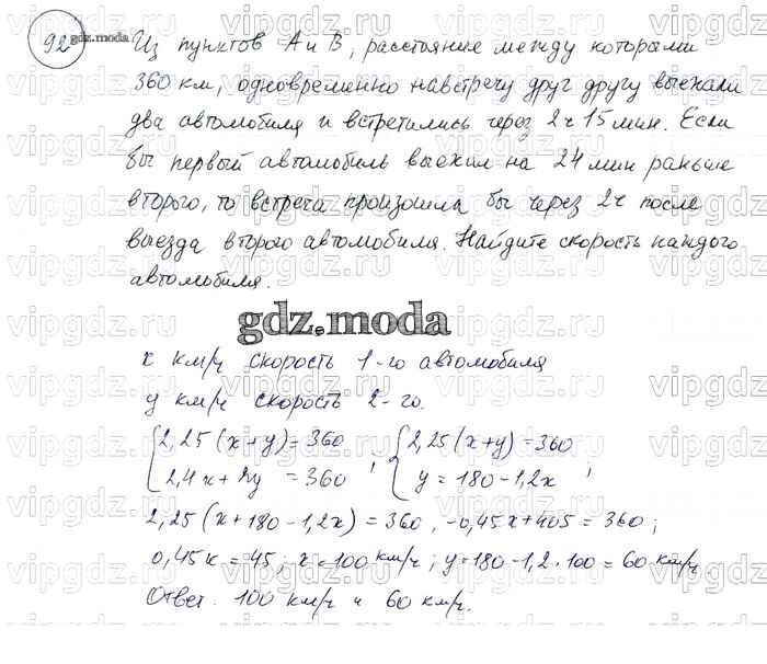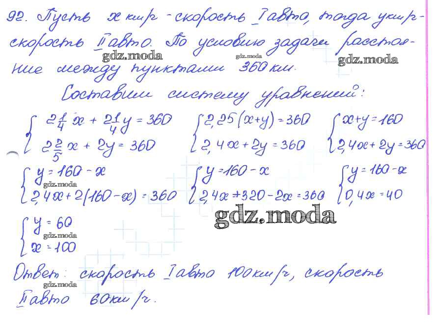 ОТВЕТ на задание № 92 Задачник по Алгебре 7 класс Мордкович Базовый уровень