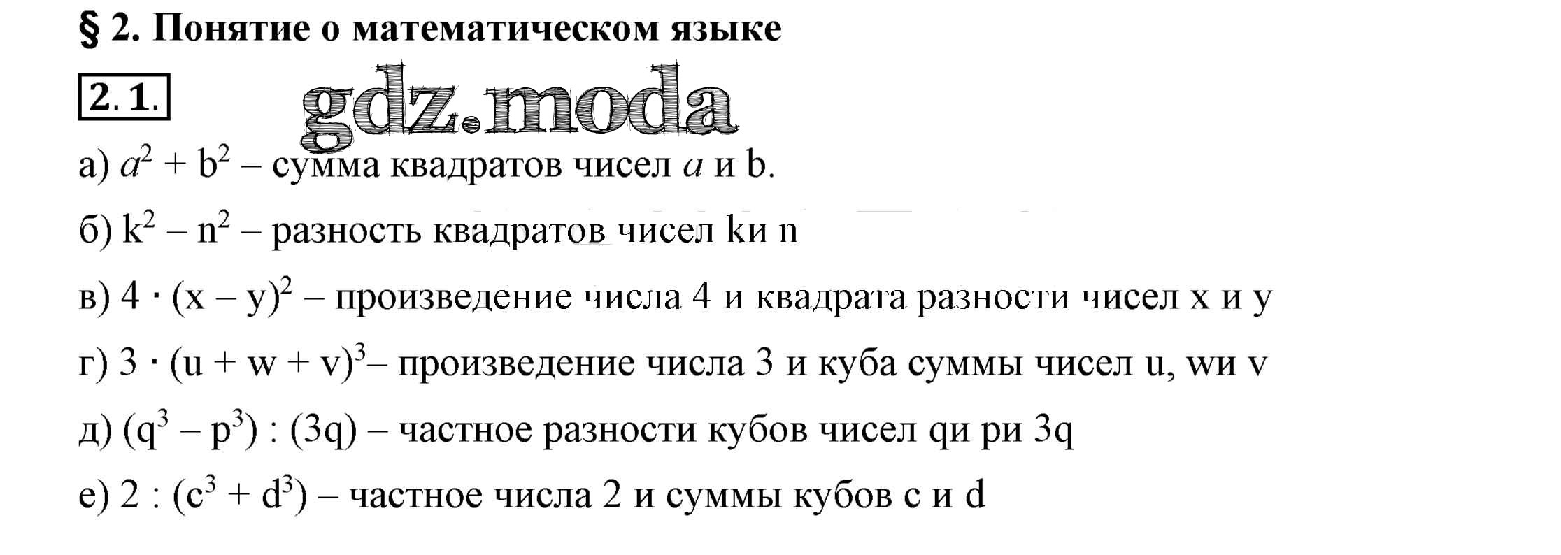 ГДЗ решение к заданию № 2.1 Алгебра 7 класс Мордкович А.Г. Просвещение 2018 ФГОС бесплатно на гдз.мода!