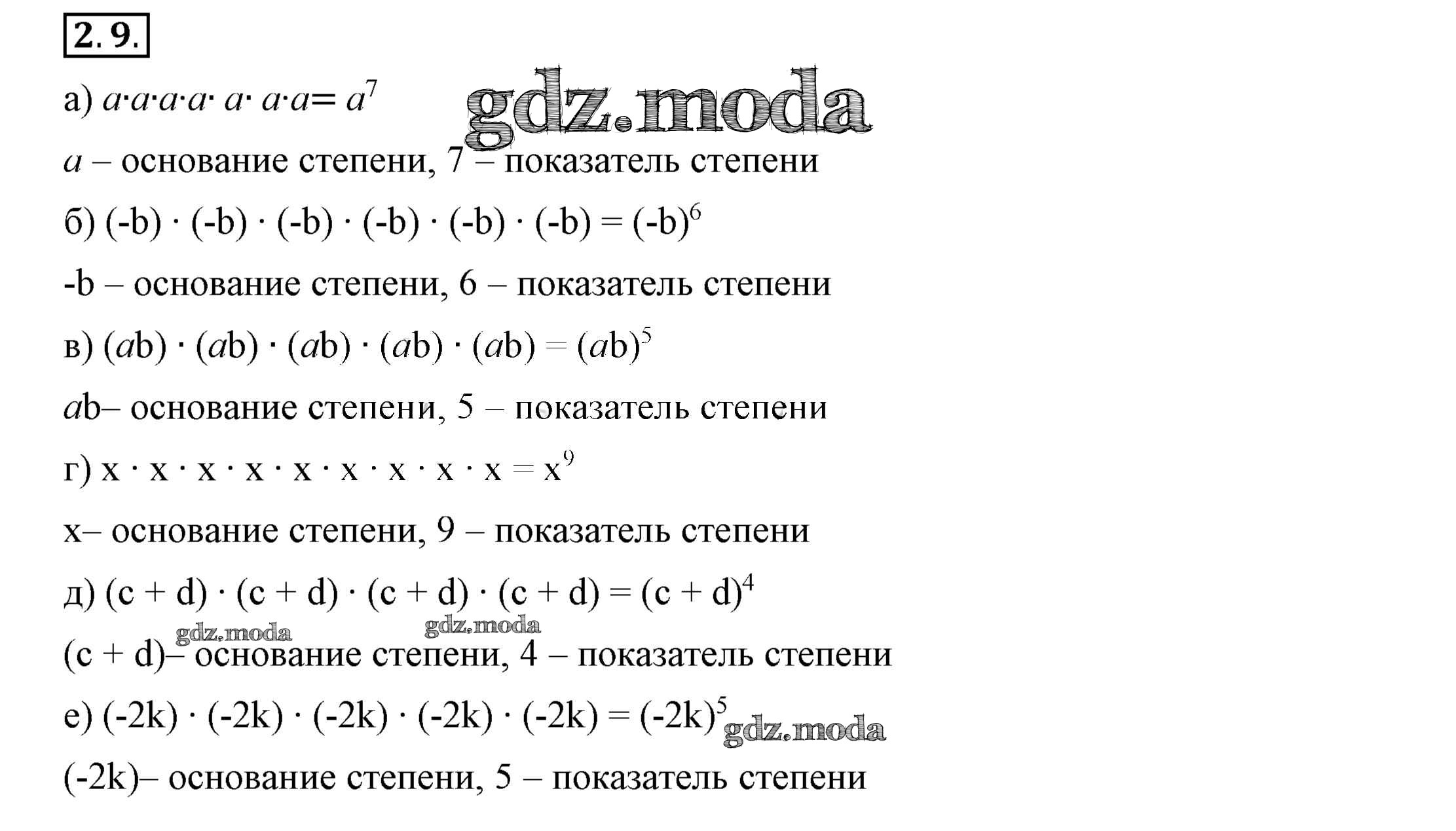 ГДЗ решение к заданию № 2.9 Алгебра 7 класс Мордкович А.Г. Просвещение 2018 ФГОС бесплатно на гдз.мода!