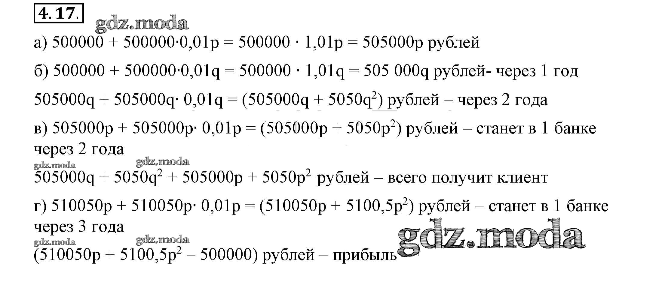 ОТВЕТ на задание № 4.17 Учебник по Алгебре 7 класс Мордкович