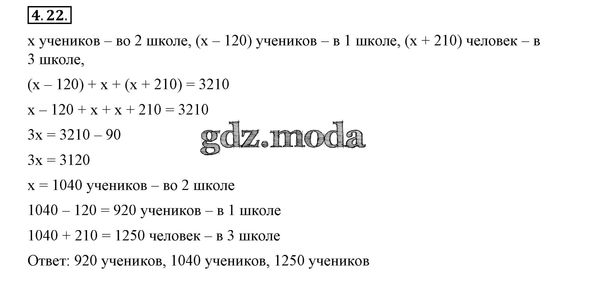 ОТВЕТ на задание № 4.22 Учебник по Алгебре 7 класс Мордкович