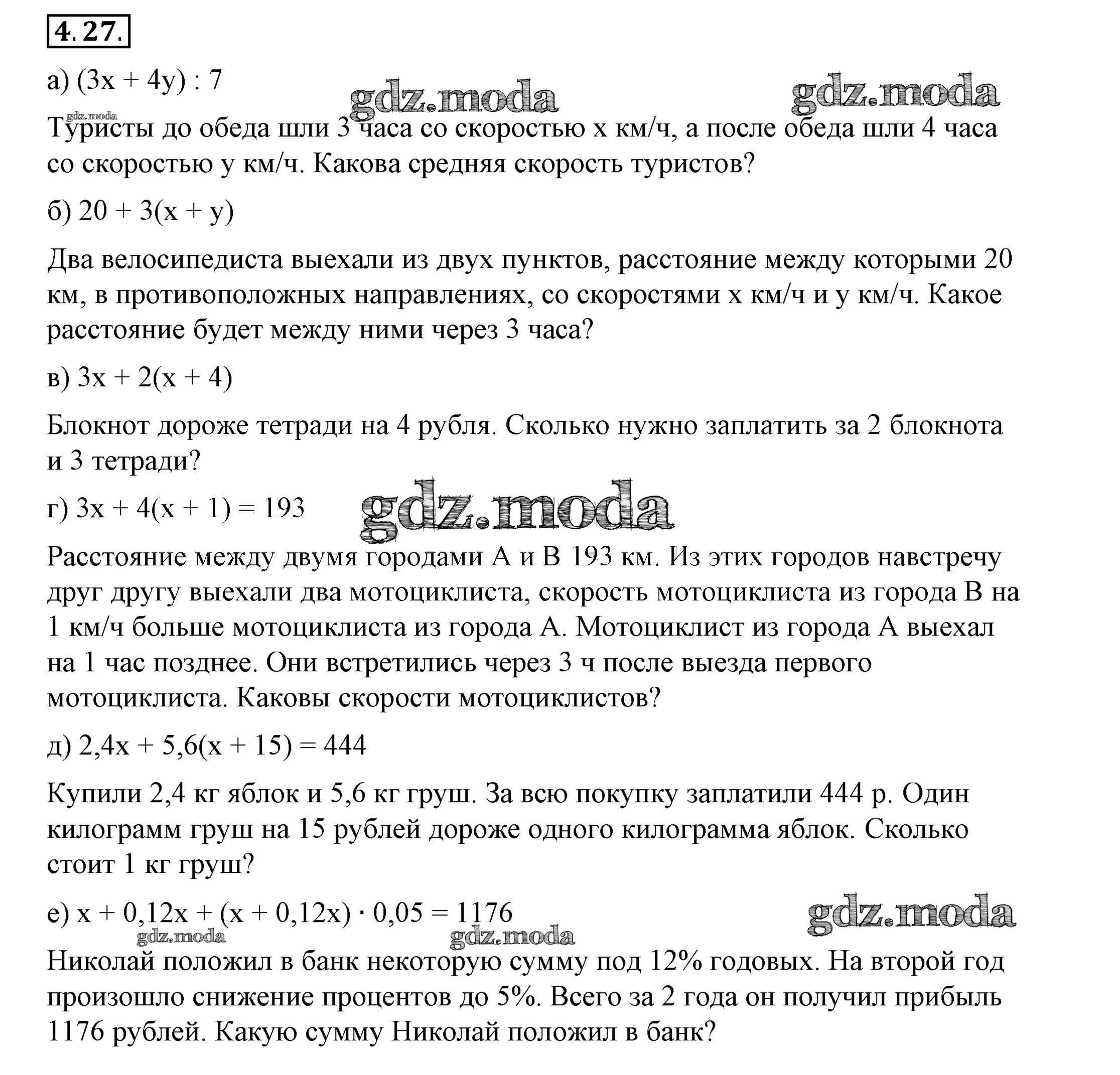 ГДЗ решение к заданию № 4.27 Алгебра 7 класс Мордкович А.Г. Просвещение 2018 ФГОС бесплатно на гдз.мода!