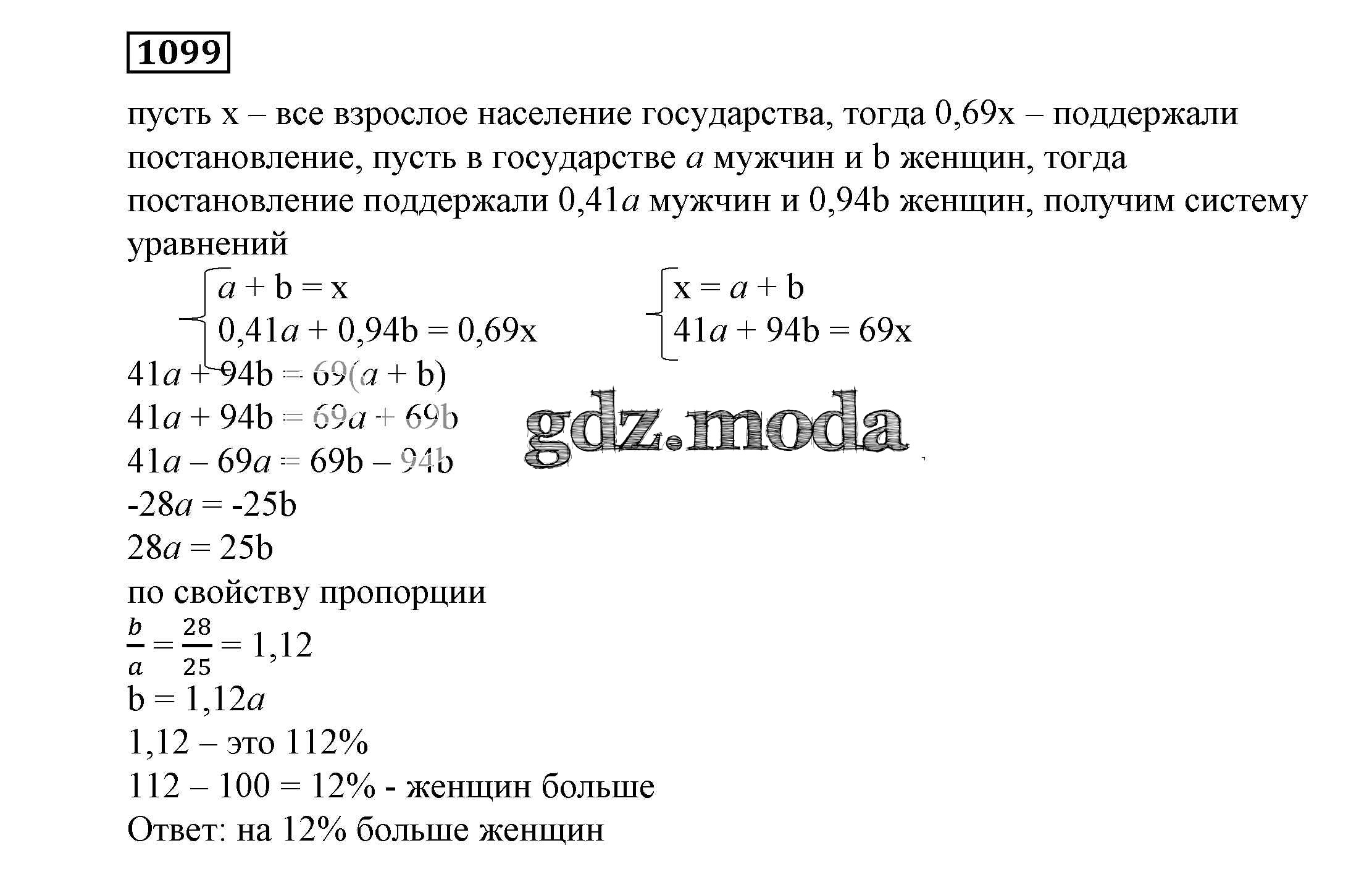 ОТВЕТ на задание № 1099 Учебник по Алгебре 7 класс Никольский МГУ - школе