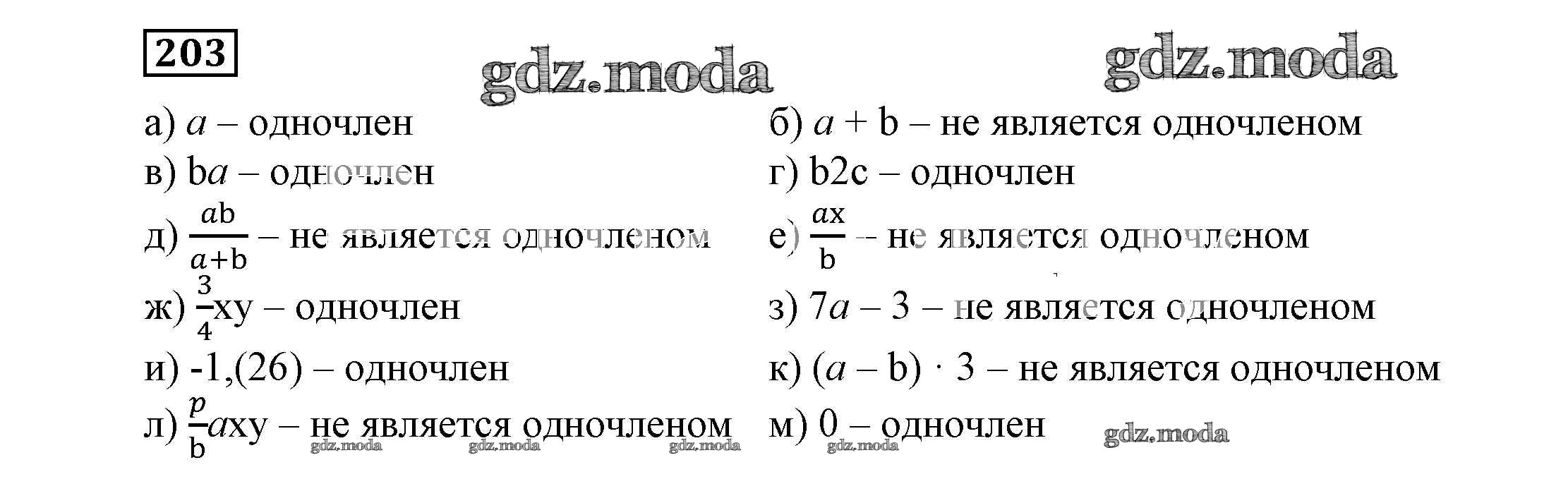 ОТВЕТ на задание № 203 Учебник по Алгебре 7 класс Никольский МГУ - школе