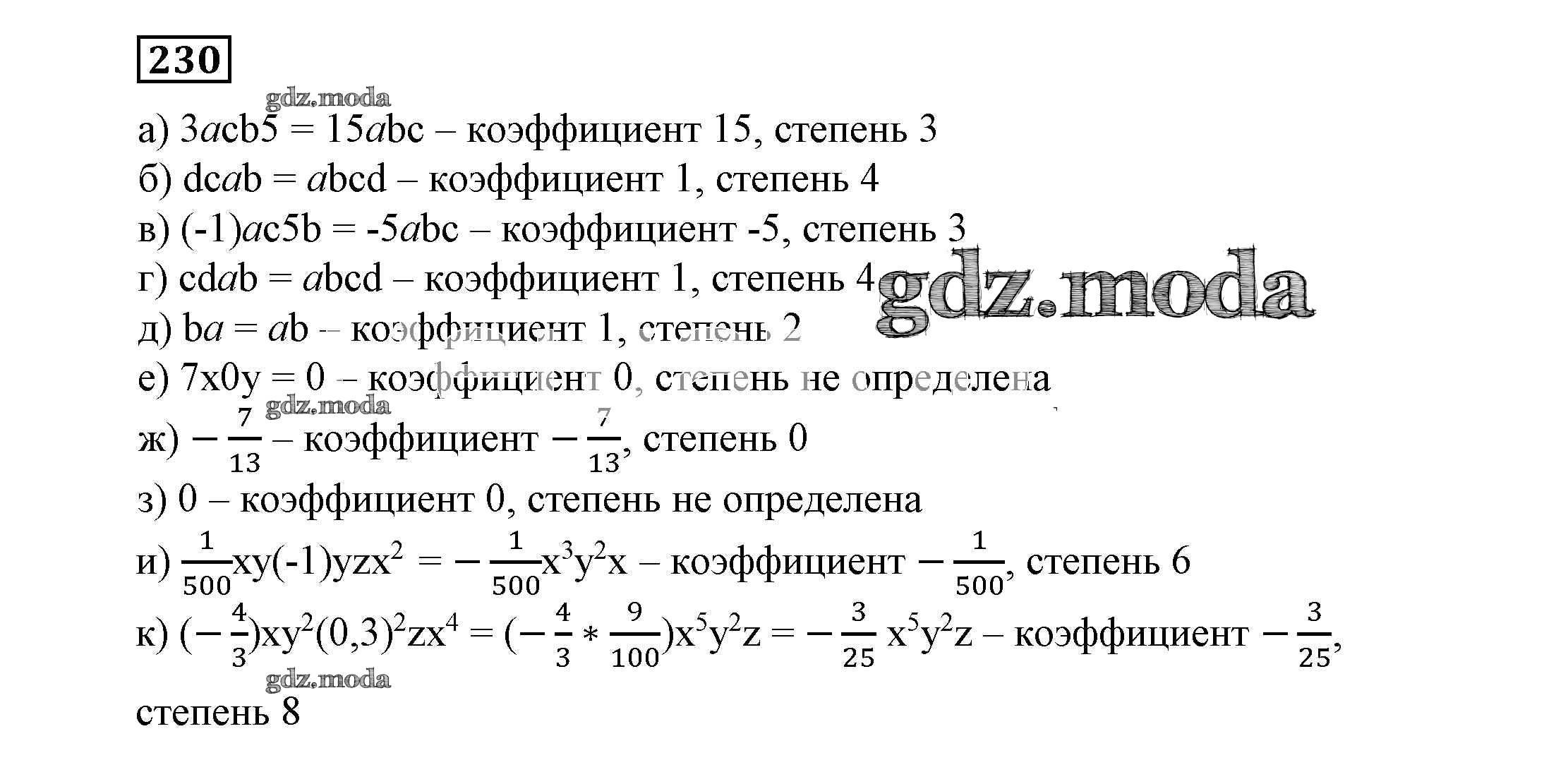 ОТВЕТ на задание № 230 Учебник по Алгебре 7 класс Никольский МГУ - школе