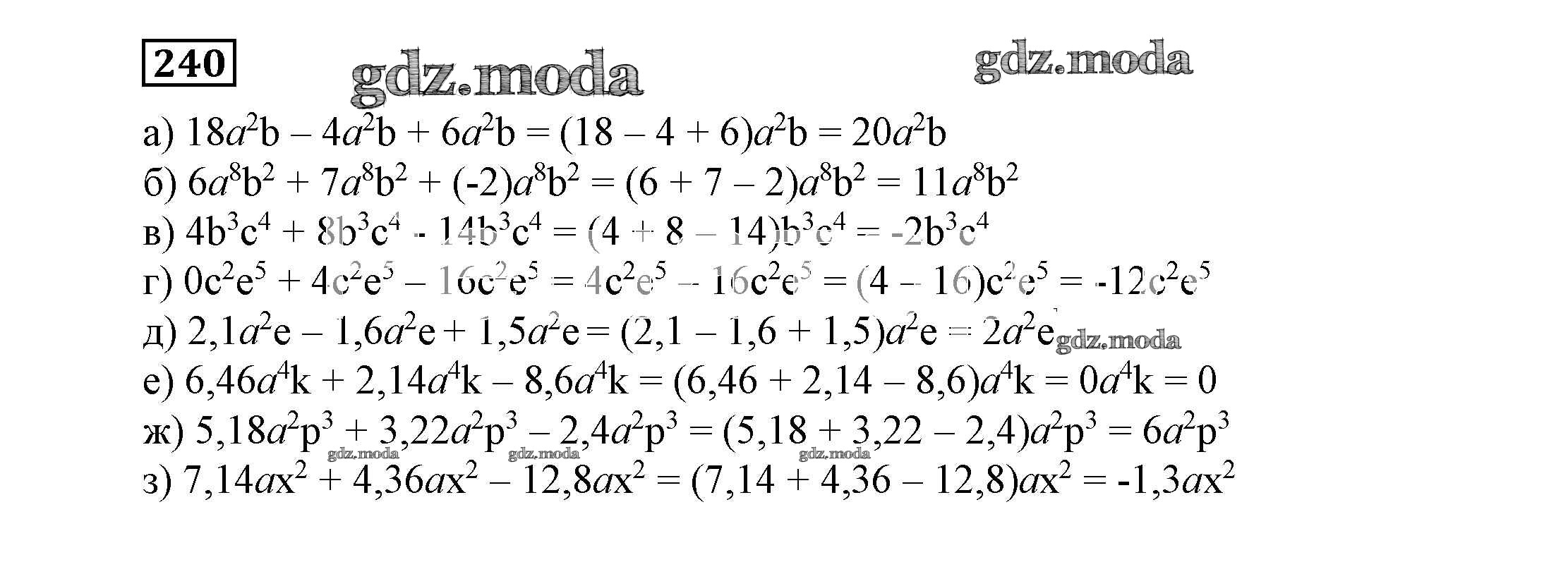 ОТВЕТ на задание № 240 Учебник по Алгебре 7 класс Никольский МГУ - школе
