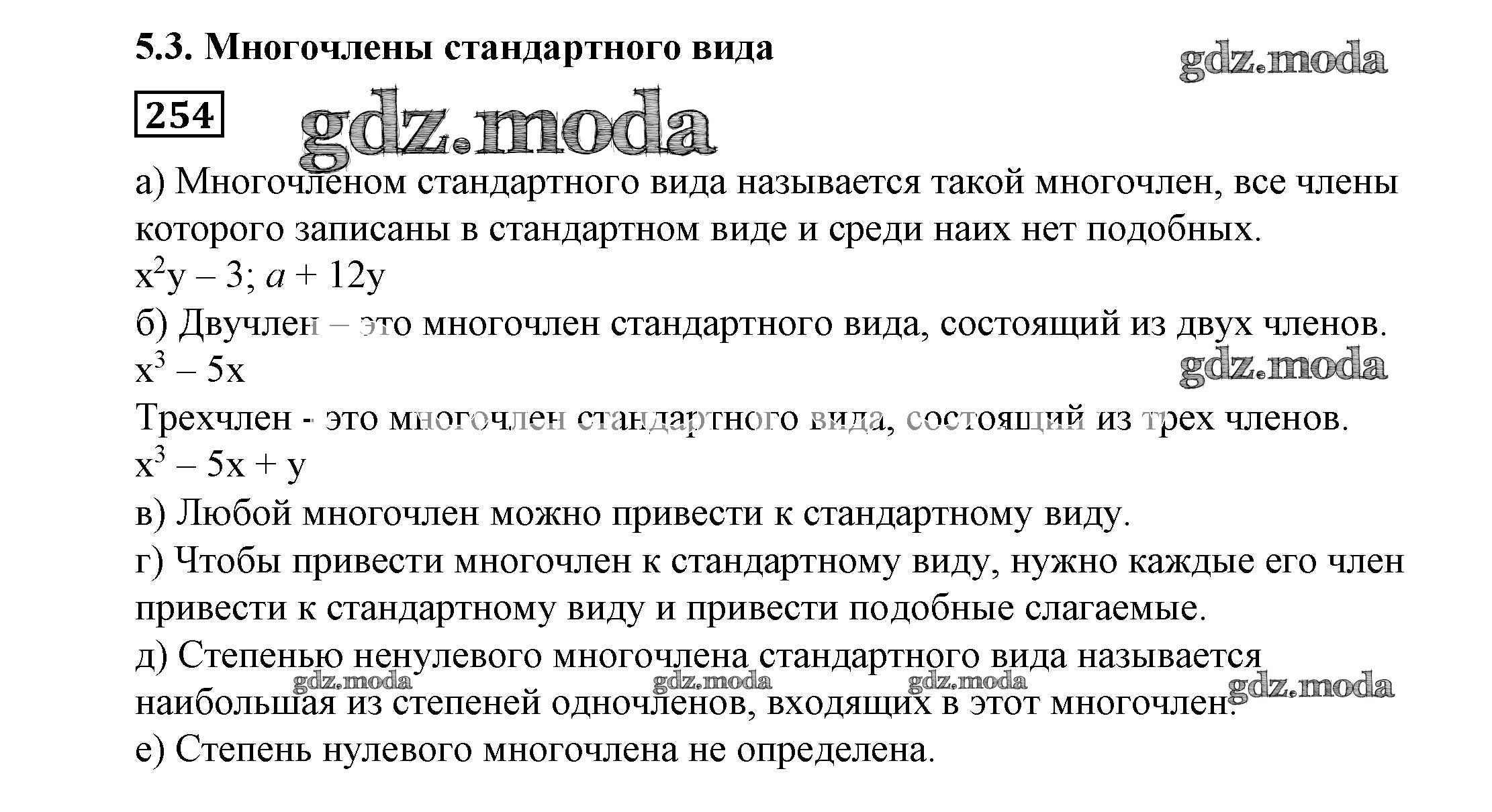 ОТВЕТ на задание № 254 Учебник по Алгебре 7 класс Никольский МГУ - школе