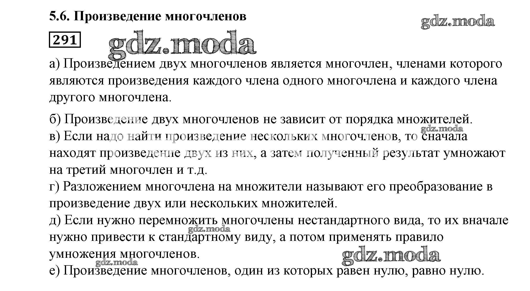 ОТВЕТ на задание № 291 Учебник по Алгебре 7 класс Никольский МГУ - школе