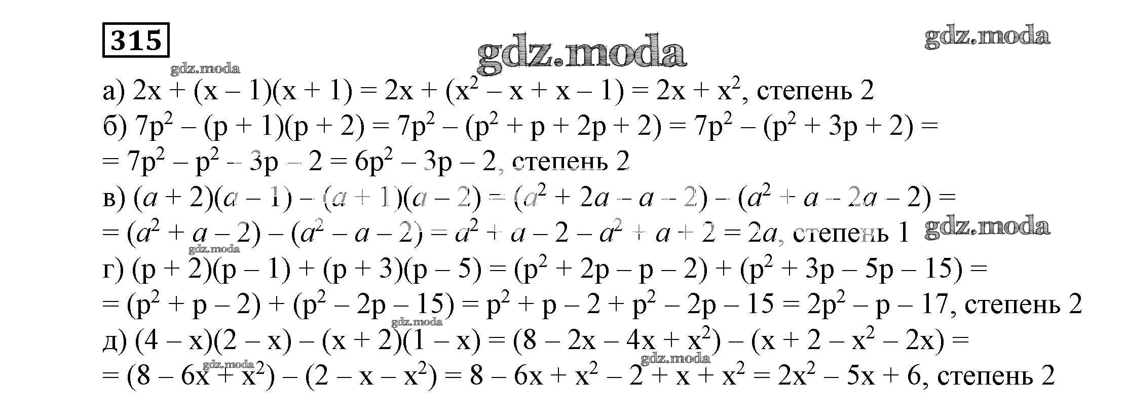 ОТВЕТ на задание № 315 Учебник по Алгебре 7 класс Никольский МГУ - школе