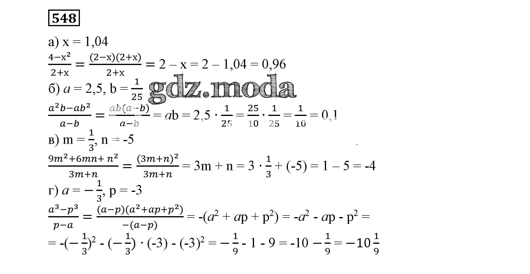 ОТВЕТ на задание № 548 Учебник по Алгебре 7 класс Никольский МГУ - школе