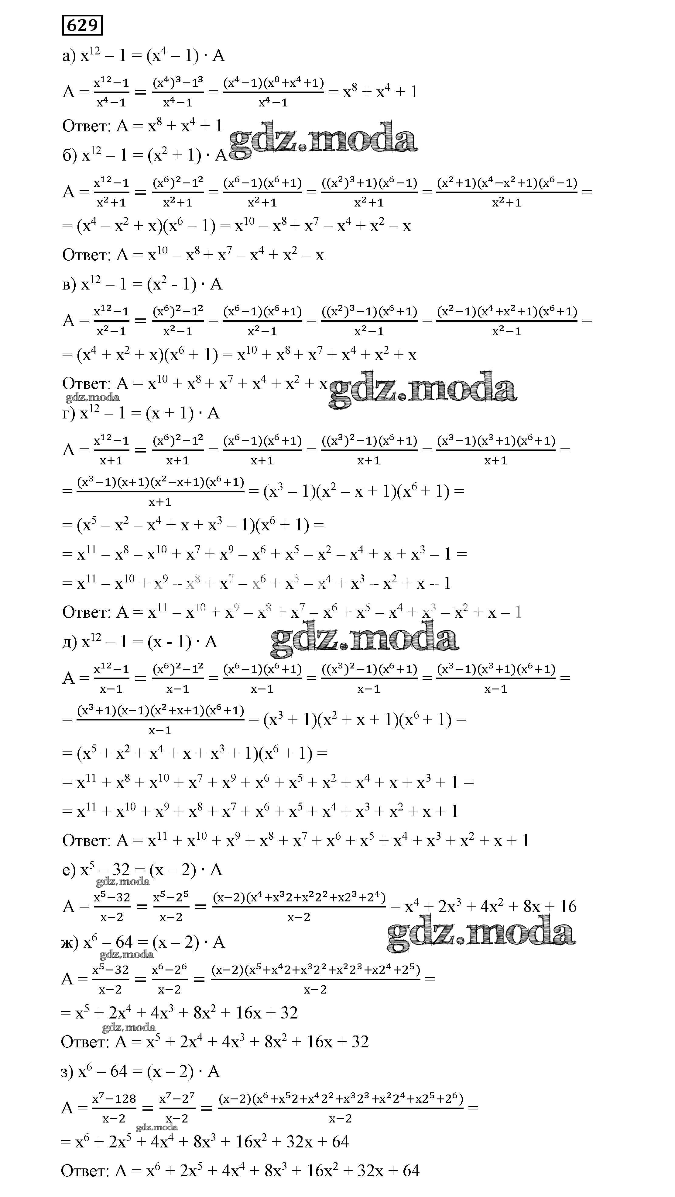ОТВЕТ на задание № 629 Учебник по Алгебре 7 класс Никольский МГУ - школе