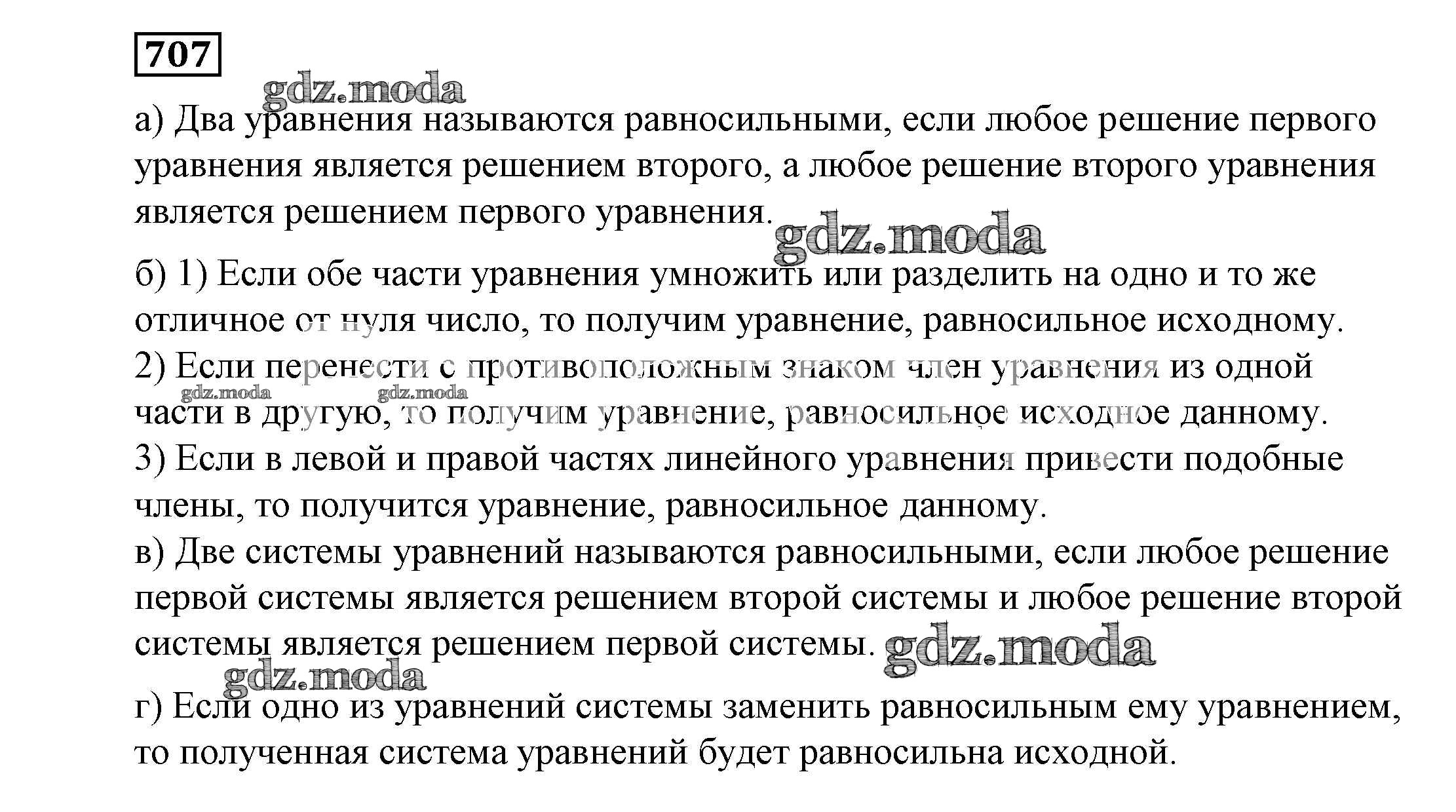 ОТВЕТ на задание № 707 Учебник по Алгебре 7 класс Никольский МГУ - школе