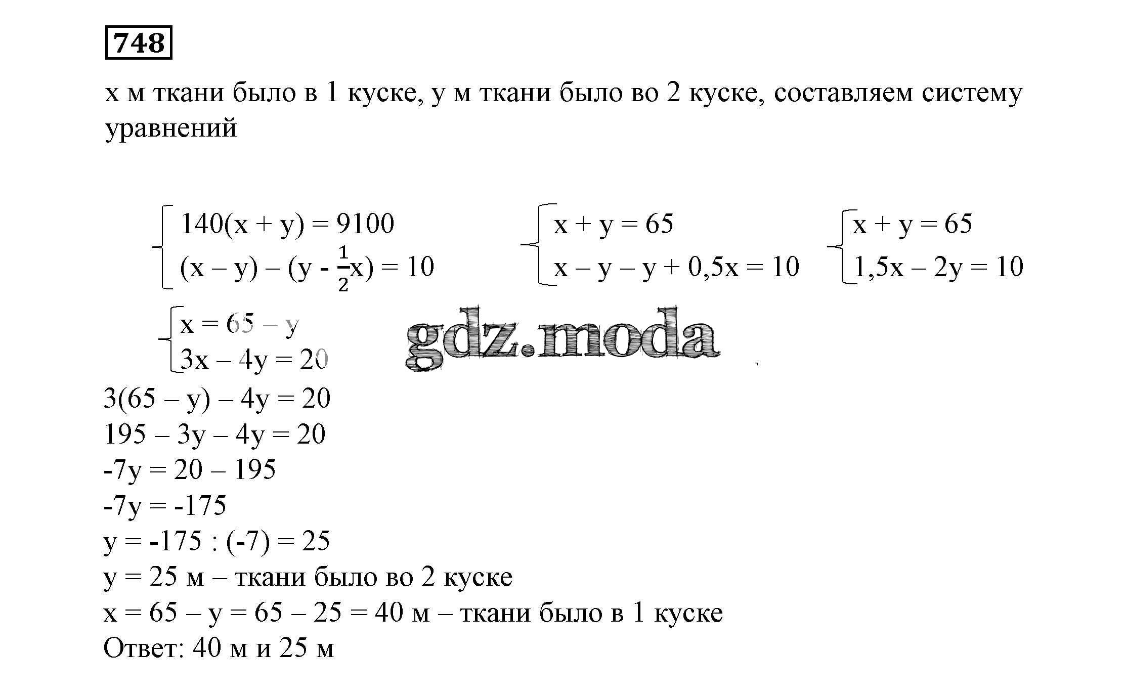 ОТВЕТ на задание № 748 Учебник по Алгебре 7 класс Никольский МГУ - школе