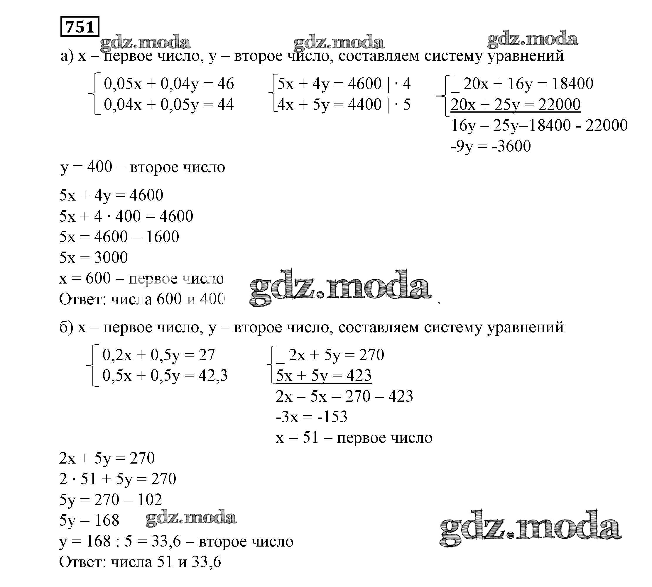 ОТВЕТ на задание № 751 Учебник по Алгебре 7 класс Никольский МГУ - школе