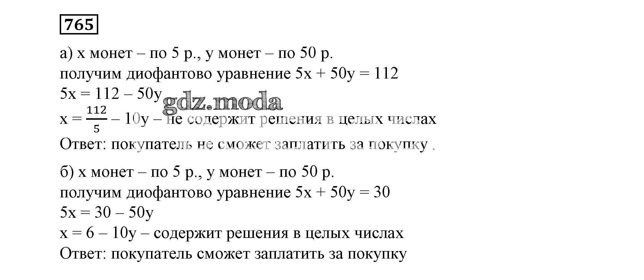 ОТВЕТ на задание № 765 Учебник по Алгебре 7 класс Никольский МГУ - школе