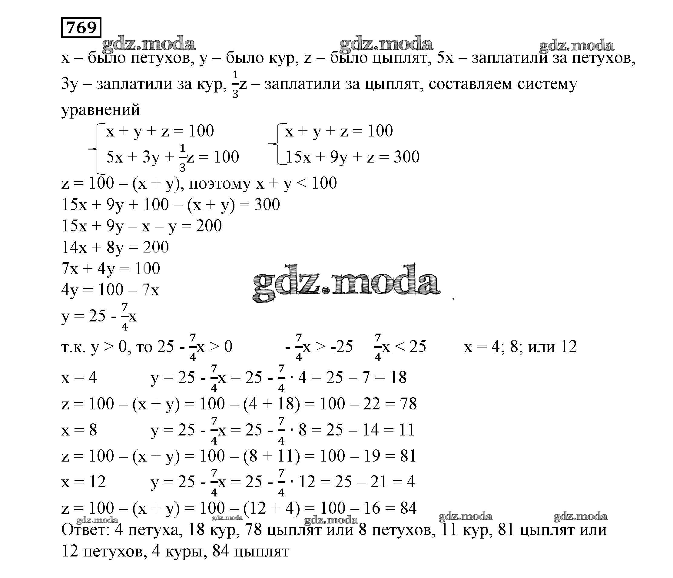 ОТВЕТ на задание № 769 Учебник по Алгебре 7 класс Никольский МГУ - школе