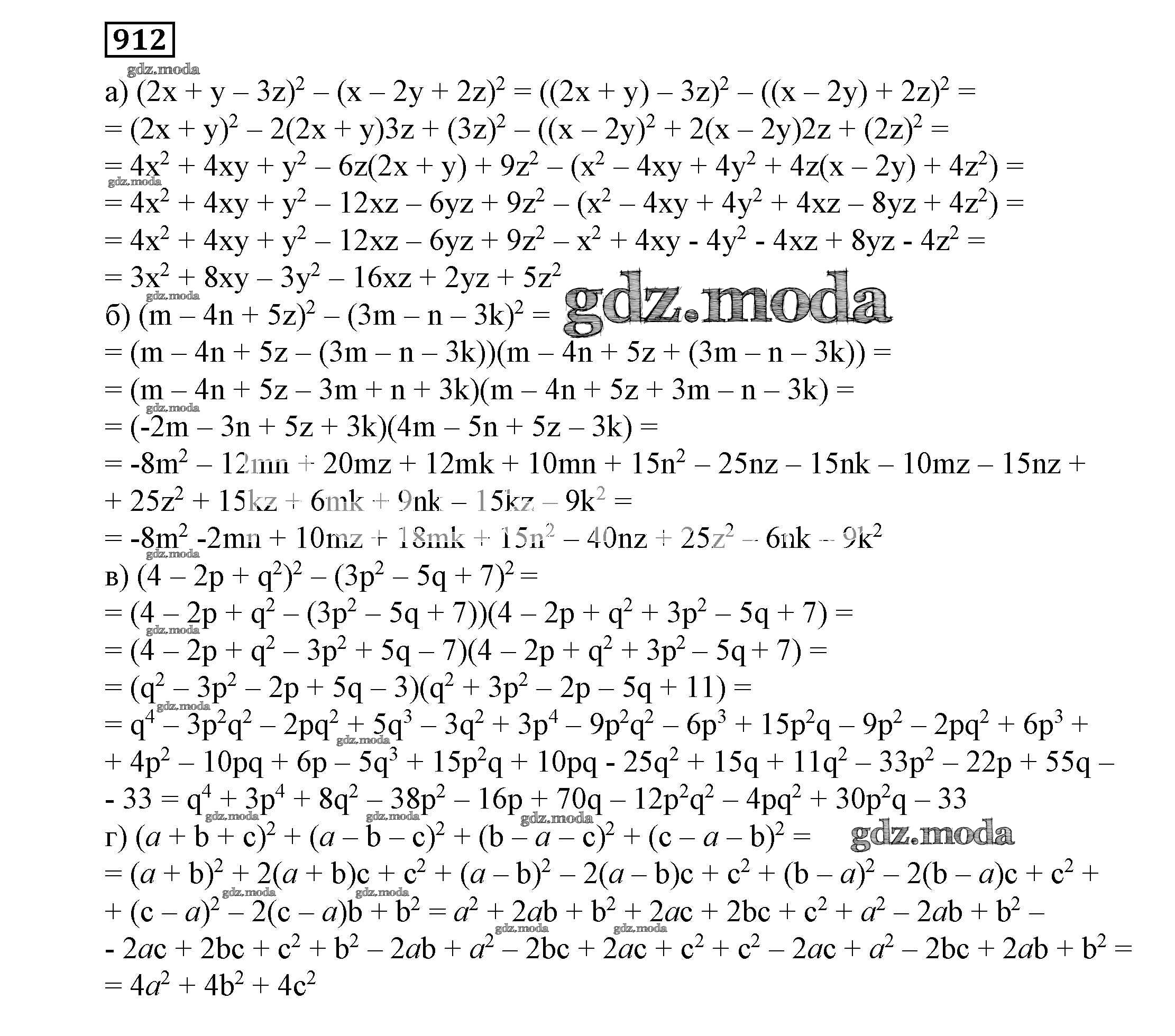 ОТВЕТ на задание № 912 Учебник по Алгебре 7 класс Никольский МГУ - школе