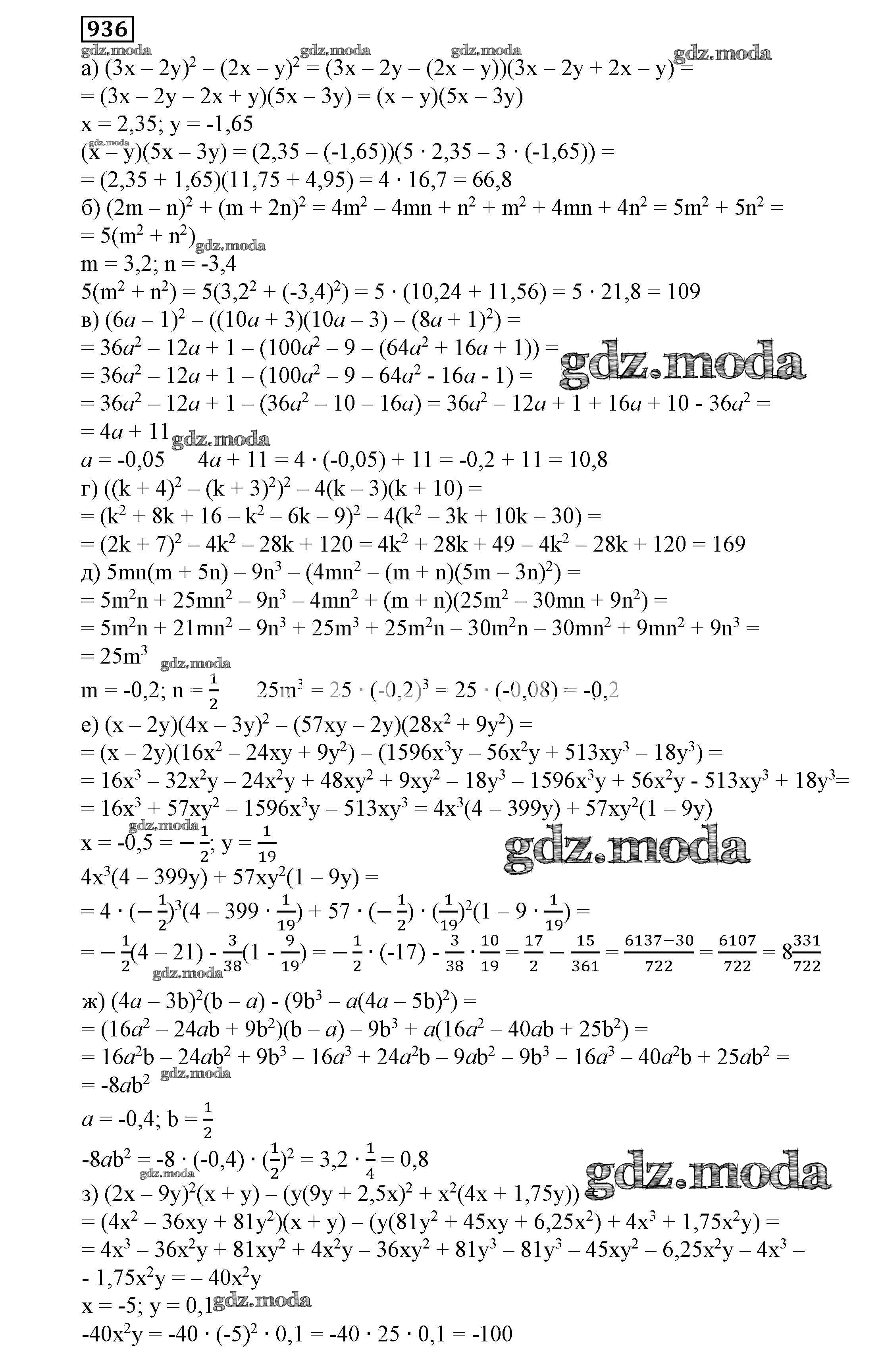 ОТВЕТ на задание № 936 Учебник по Алгебре 7 класс Никольский МГУ - школе
