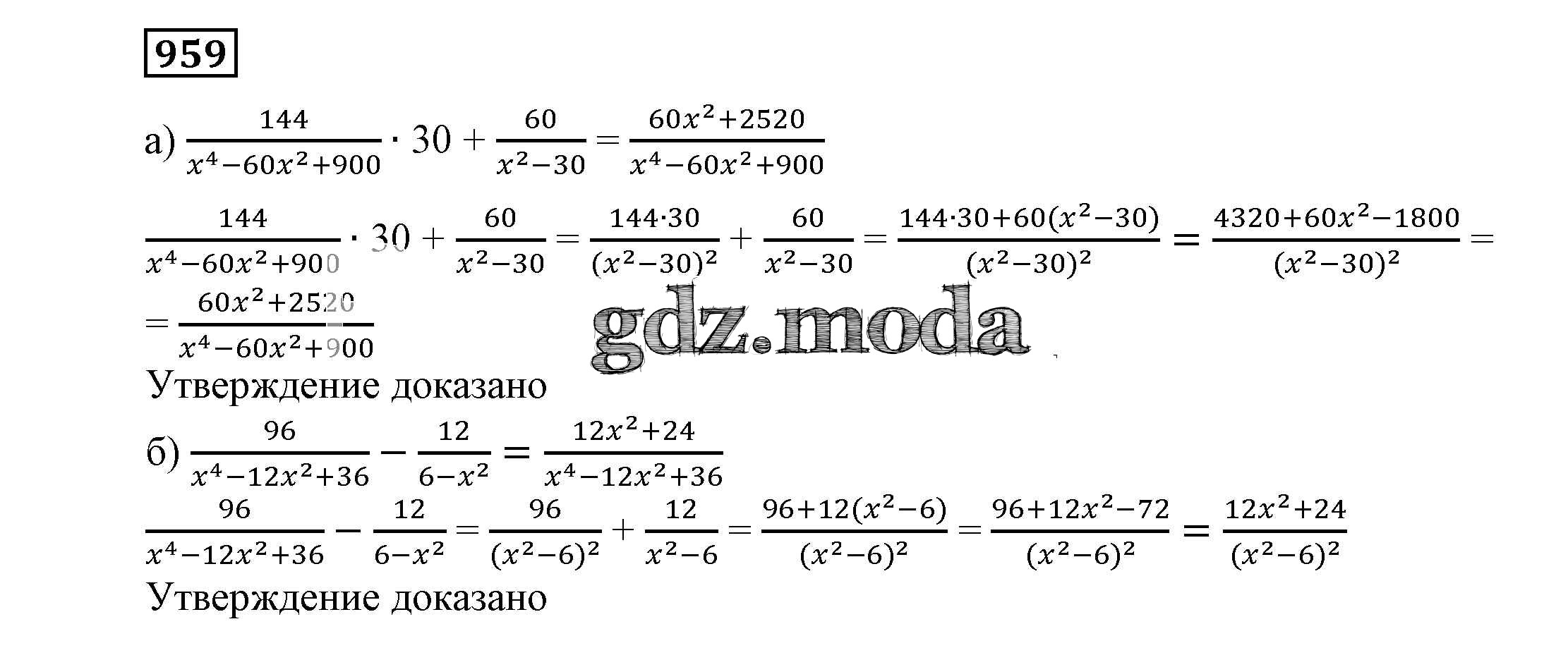 ОТВЕТ на задание № 959 Учебник по Алгебре 7 класс Никольский МГУ - школе