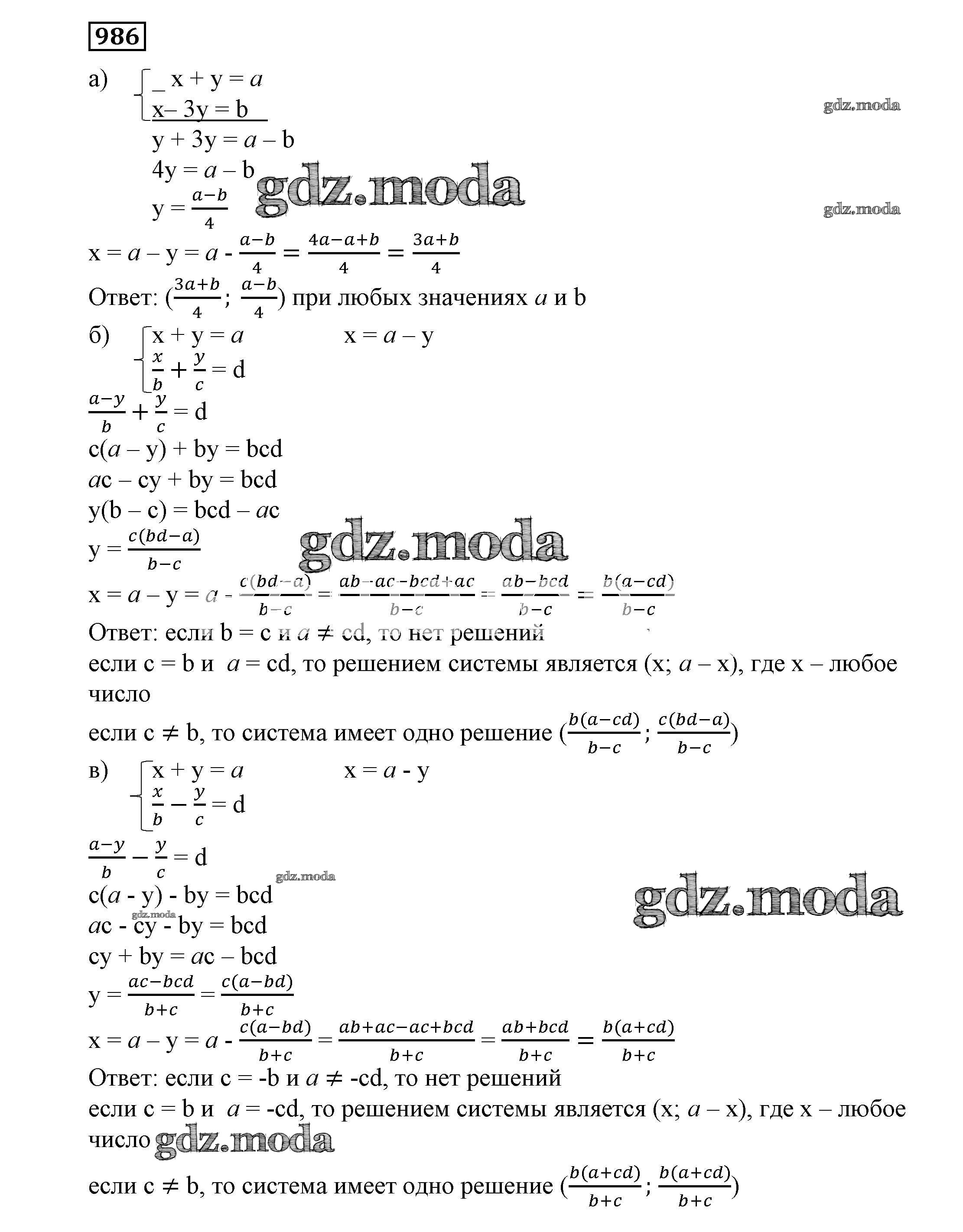 ОТВЕТ на задание № 986 Учебник по Алгебре 7 класс Никольский МГУ - школе