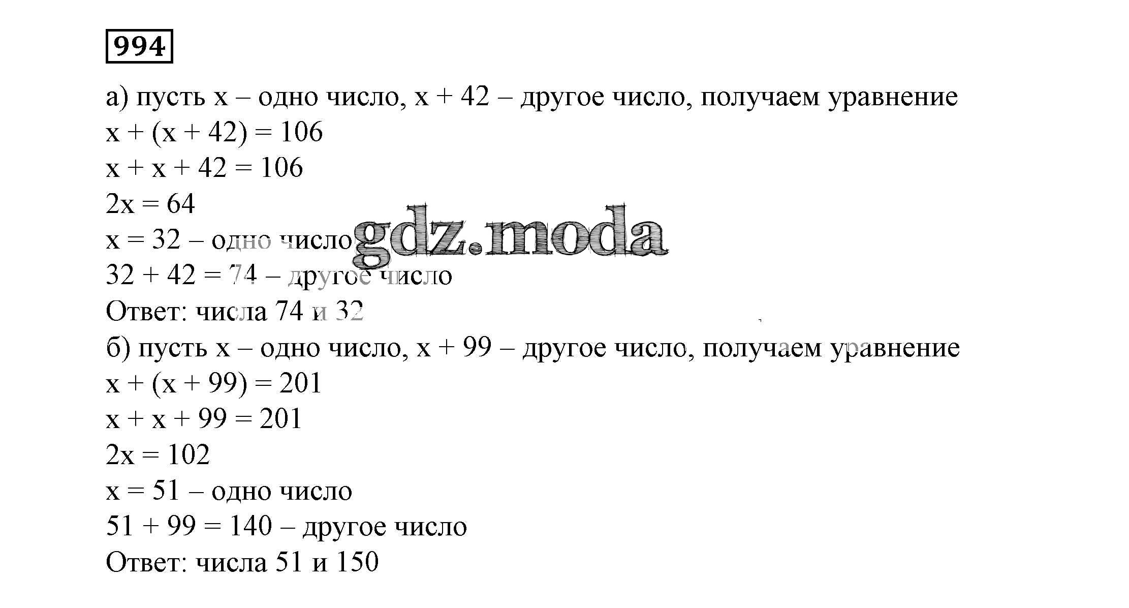 ОТВЕТ на задание № 994 Учебник по Алгебре 7 класс Никольский МГУ - школе