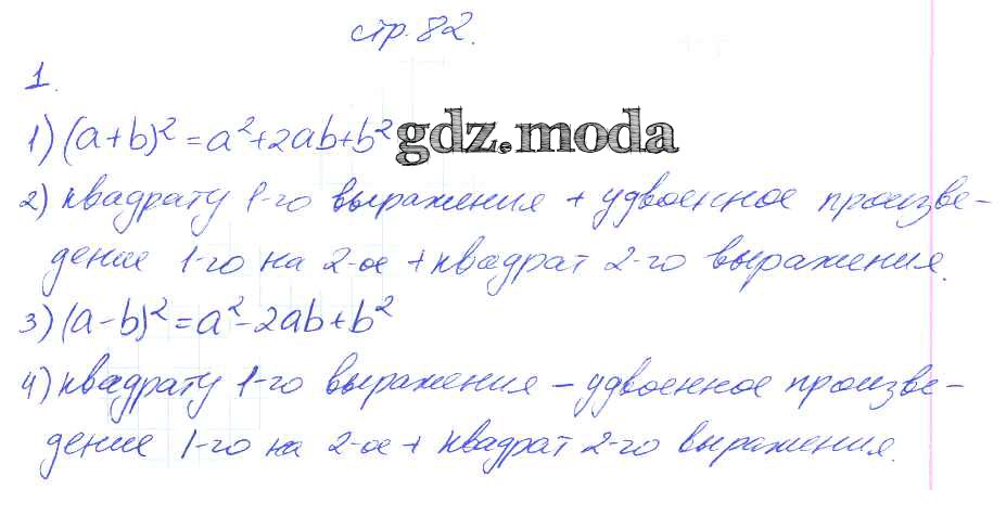 ОТВЕТ на задание № 1 Рабочая тетрадь по Алгебре 7 класс Мерзляк Алгоритм успеха