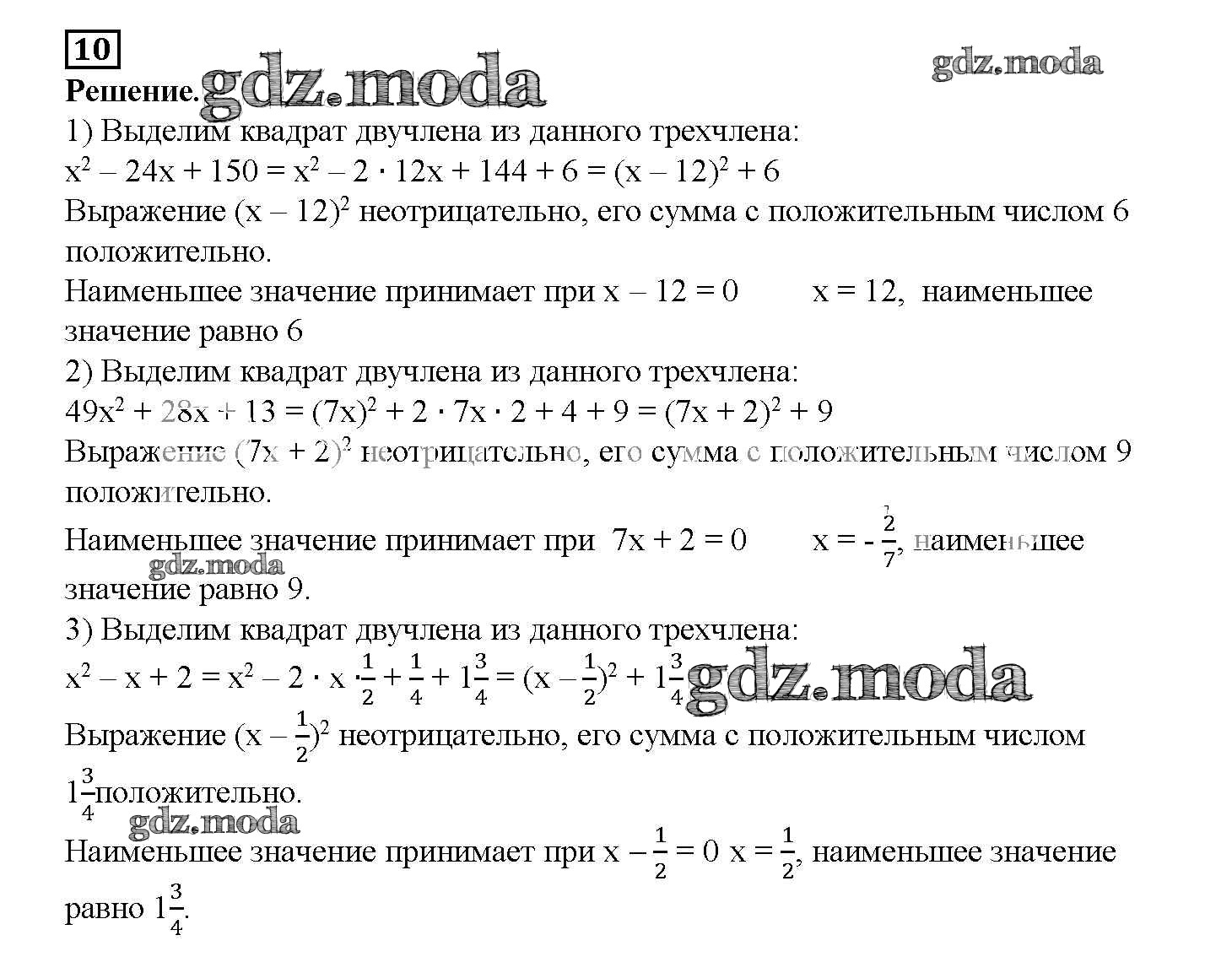 ОТВЕТ на задание № 10 Рабочая тетрадь по Алгебре 7 класс Мерзляк Алгоритм успеха