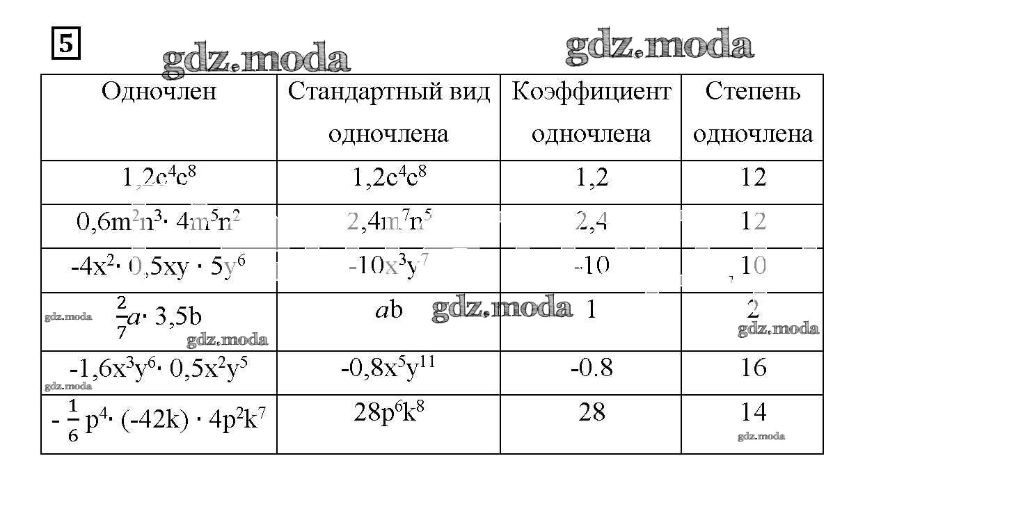 ОТВЕТ на задание № 5 Рабочая тетрадь по Алгебре 7 класс Мерзляк Алгоритм успеха