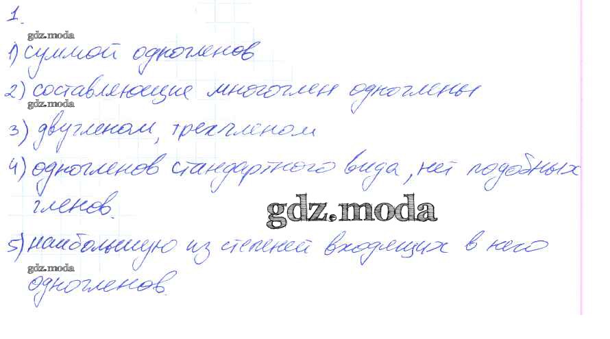 ОТВЕТ на задание № 1 Рабочая тетрадь по Алгебре 7 класс Мерзляк Алгоритм успеха