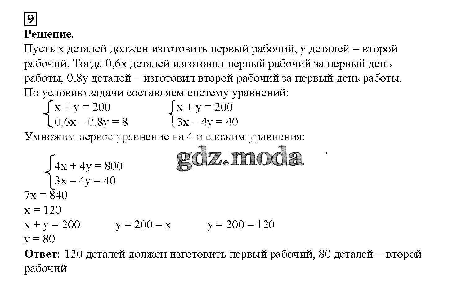 ОТВЕТ на задание № 9 Рабочая тетрадь по Алгебре 7 класс Мерзляк Алгоритм успеха