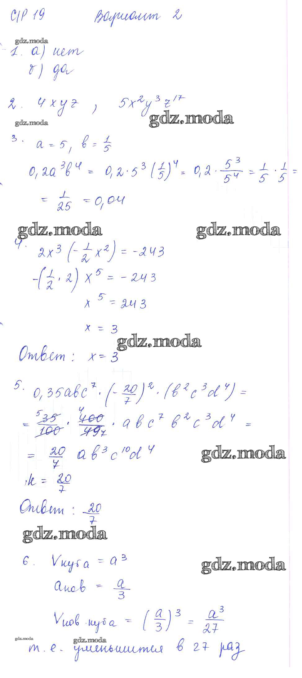 ОТВЕТ на задание № 2 Дидактические материалы по Алгебре 7 класс Попов УМК