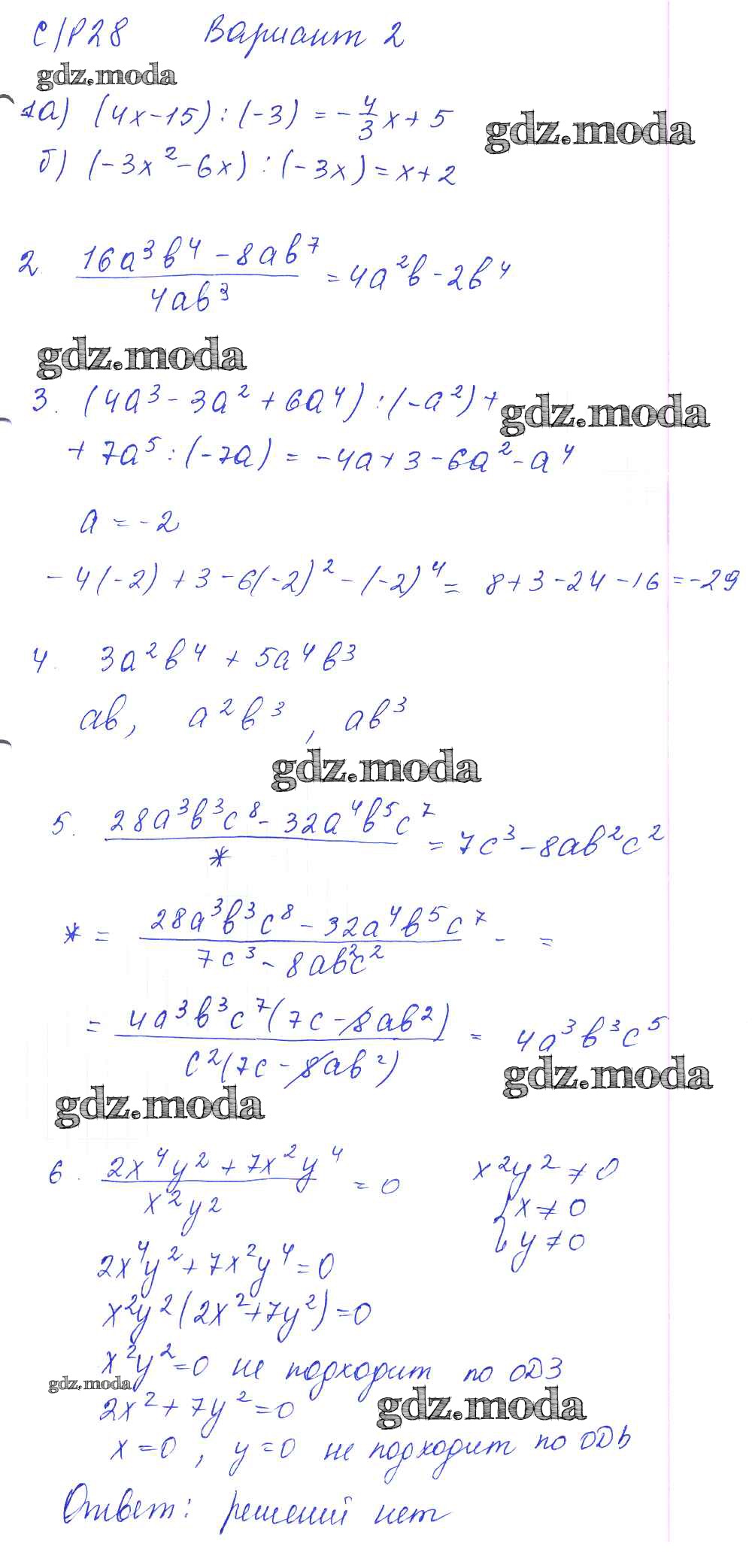 ГДЗ решение к заданию № 2 Алгебра 7 класс дидактические материалы Попов М.А. Экзамен 2016 ФГОС бесплатно на гдз.мода!