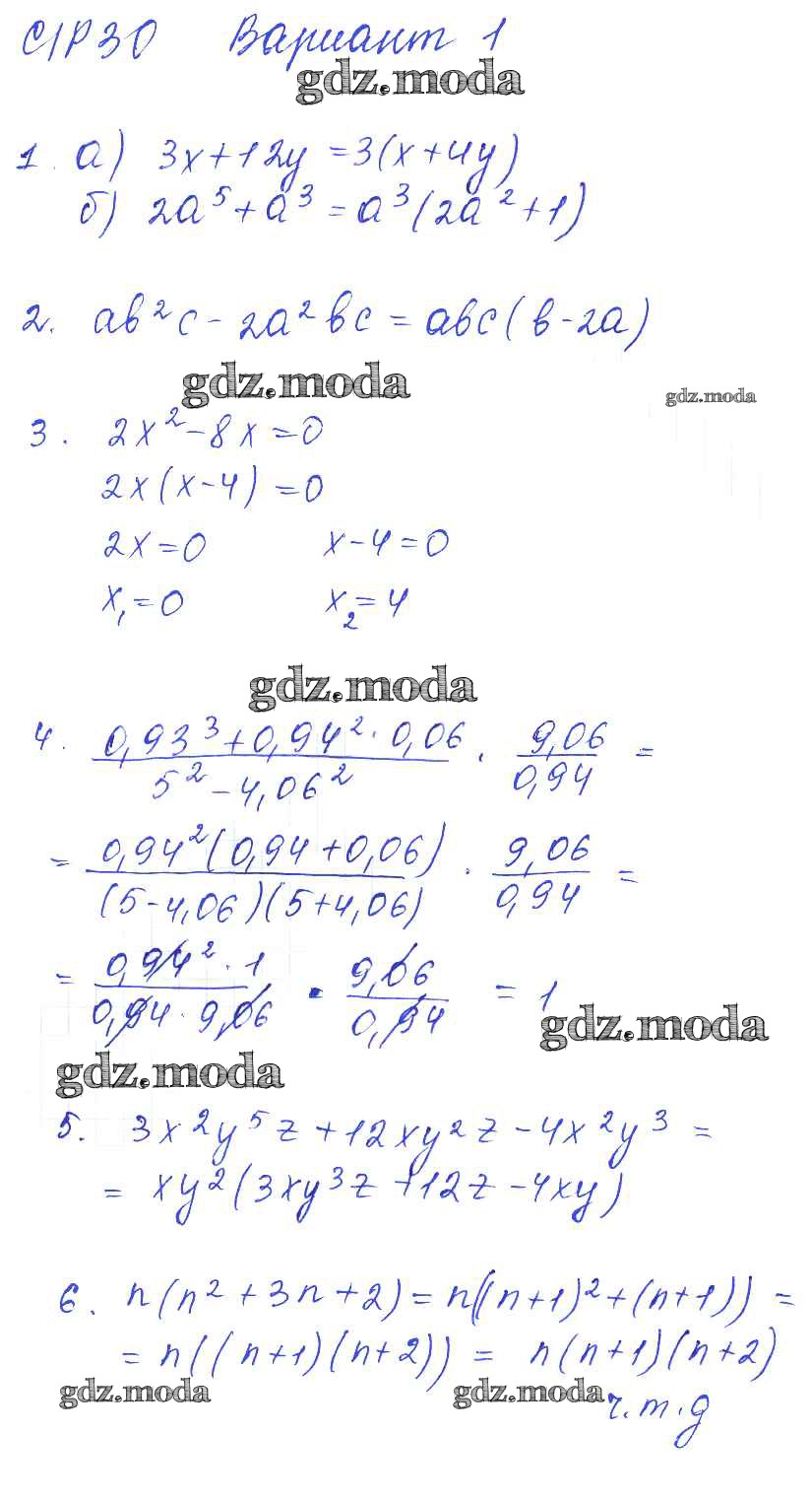 ОТВЕТ на задание № 1 Дидактические материалы по Алгебре 7 класс Попов УМК